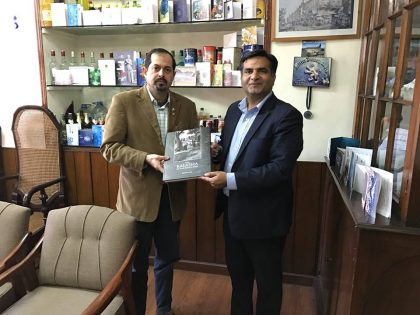 Mr. Isphanyar Bhandara Chief Executive Murree Brewery Group on the occasion of MOU signing with Dr. Amineh A. Hoti for authoring & publishing a coffee table book, titled ” Religions of Pakistan”.
