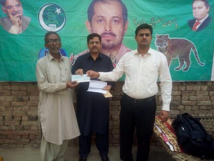 Mr. Anil Ajmal Distributed financial assistance cheques in Buddhist community of Sadiq abad on behalf of Mr. Isphanyar M. Bhandara (MNA).