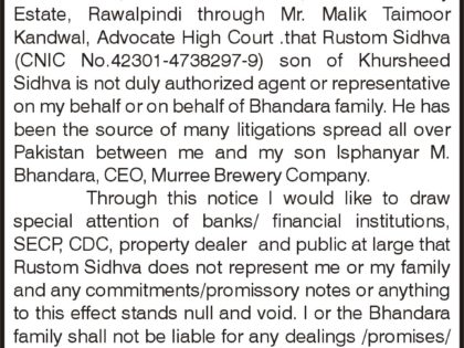 Bhandara family shall not be liable for any dealing/promises/commitments done with Rustom Sidhva