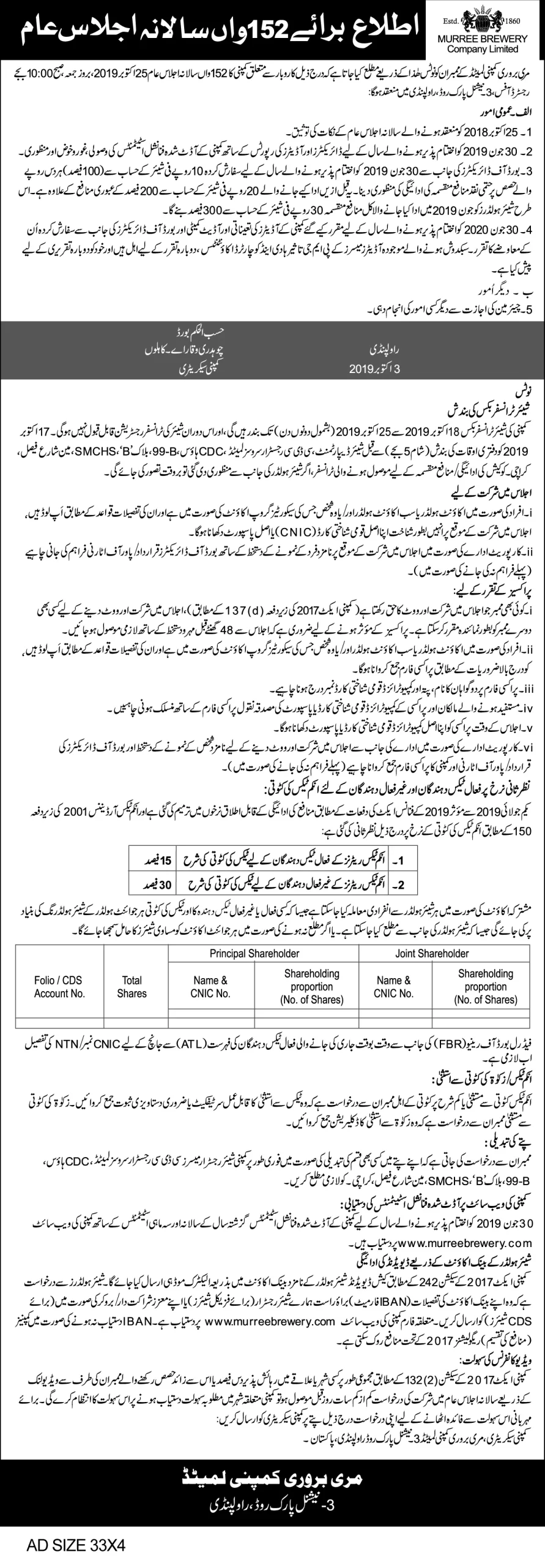 Notice of Annual General Meeting 2024 (Urdu)