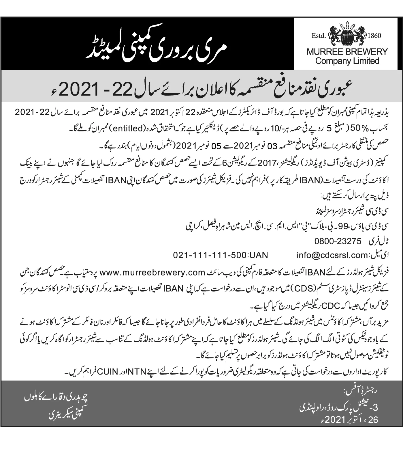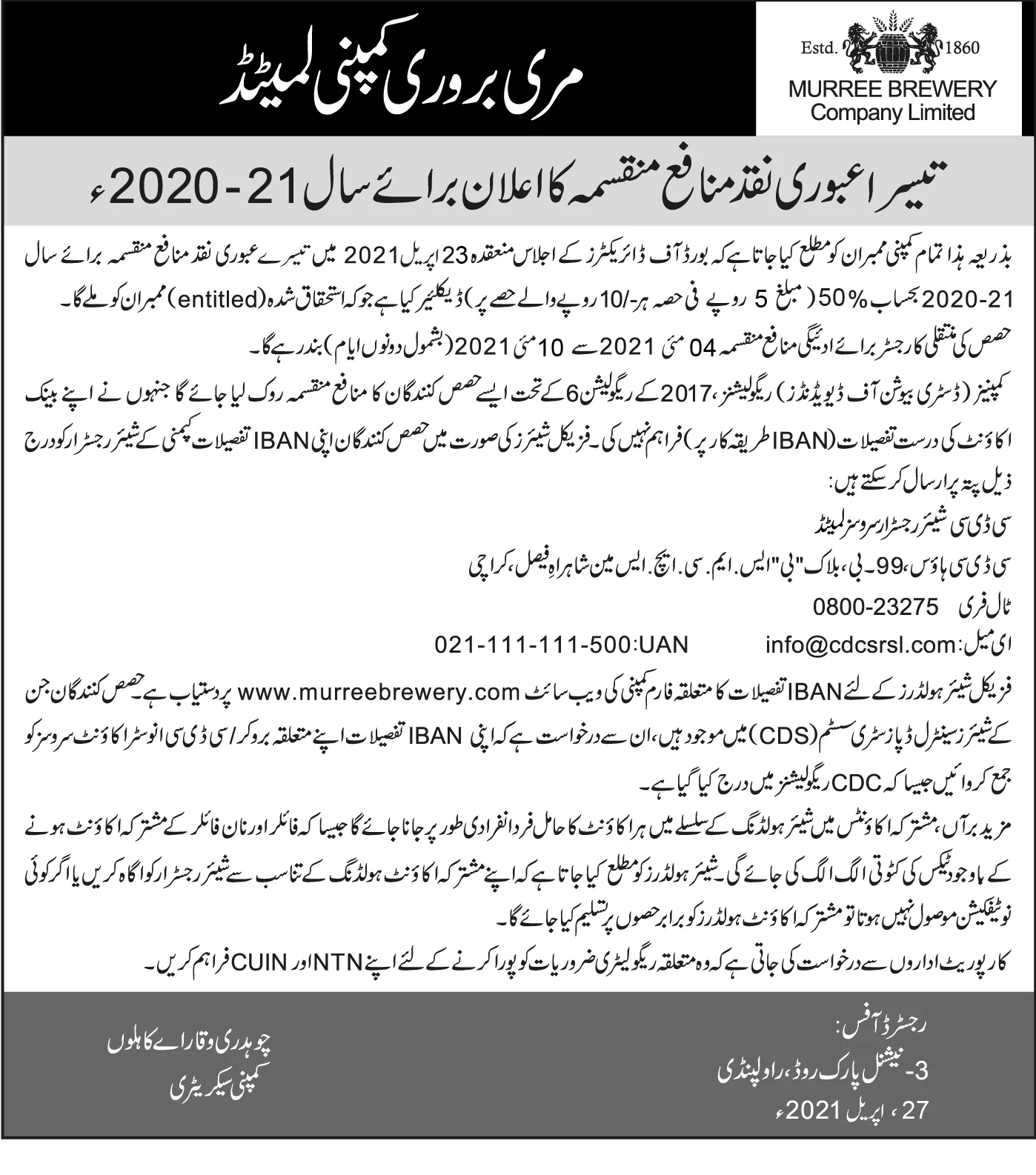 Declaration of 2nd Interim Cash dividend-2020-21-Urdu